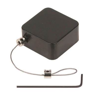 - One set screw collar forms a loop around the item being secured. The second collar is an adjustable stop preventing the cable from retracting past a certain point. A hex wrench is included with each order.